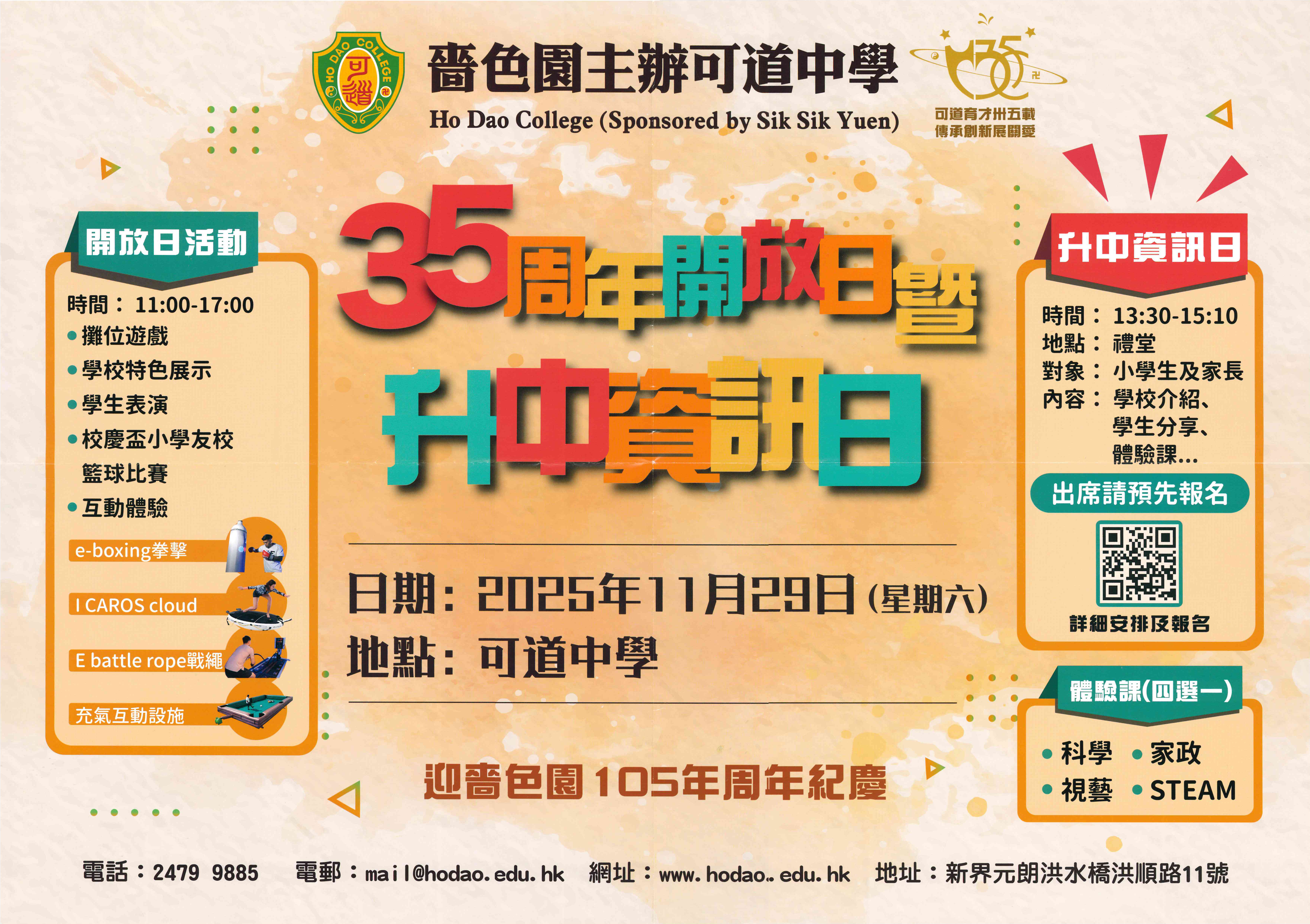 | 14. | 嗇色園主辦可道中學 35周年開放日暨升中資訊日 |
