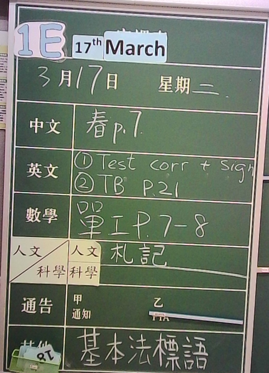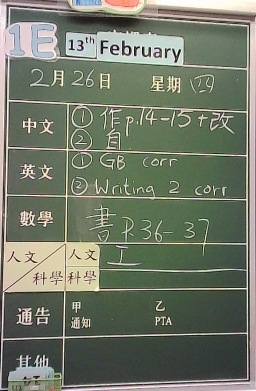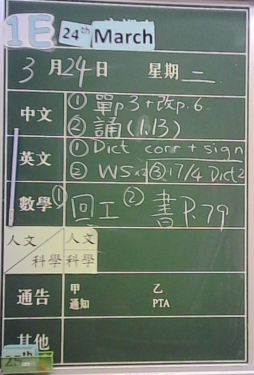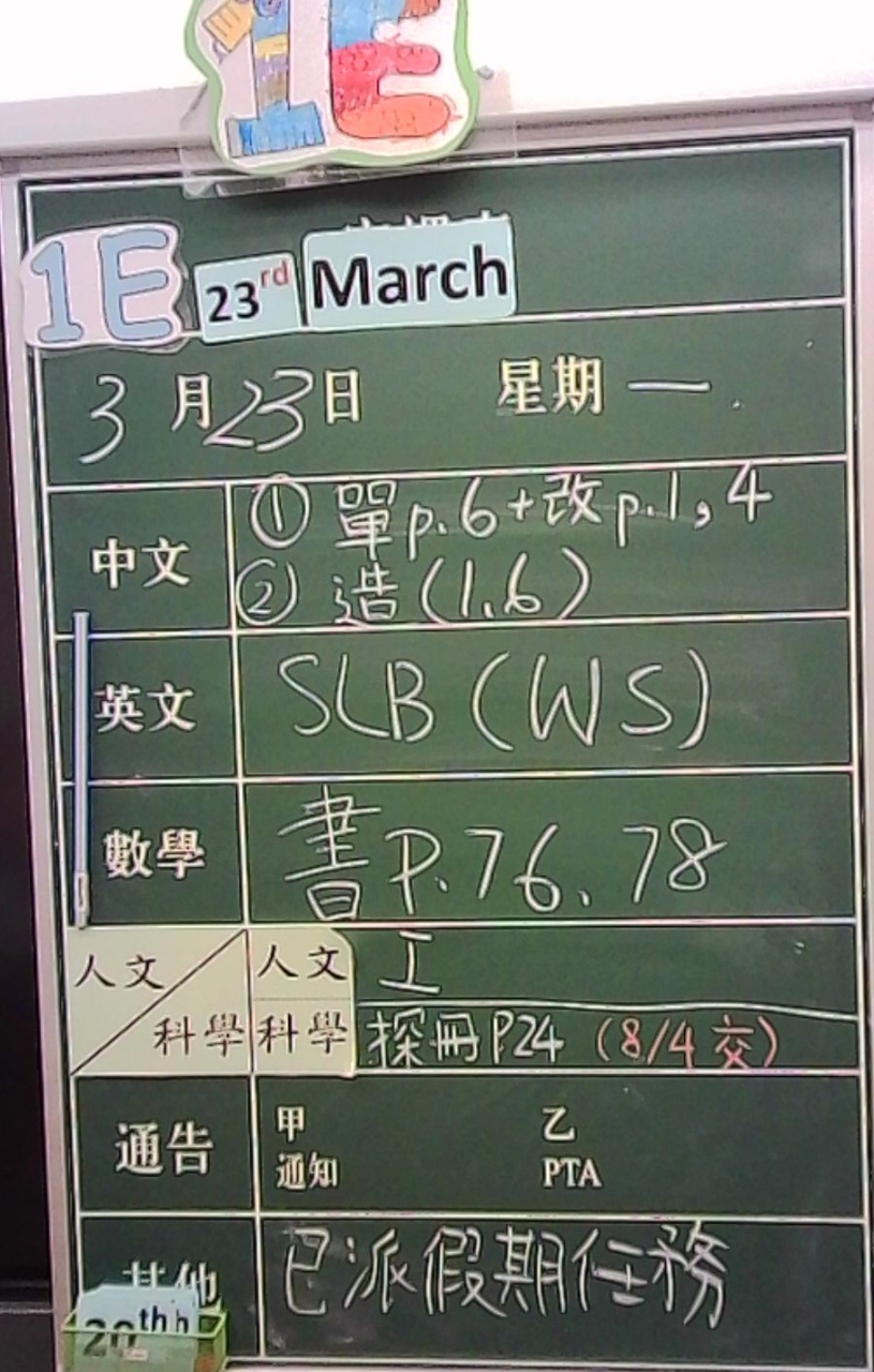 1E家課日誌
