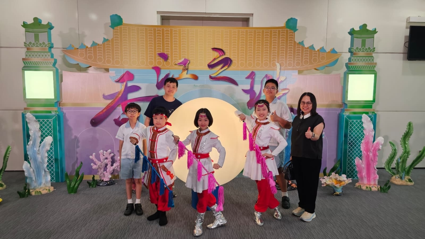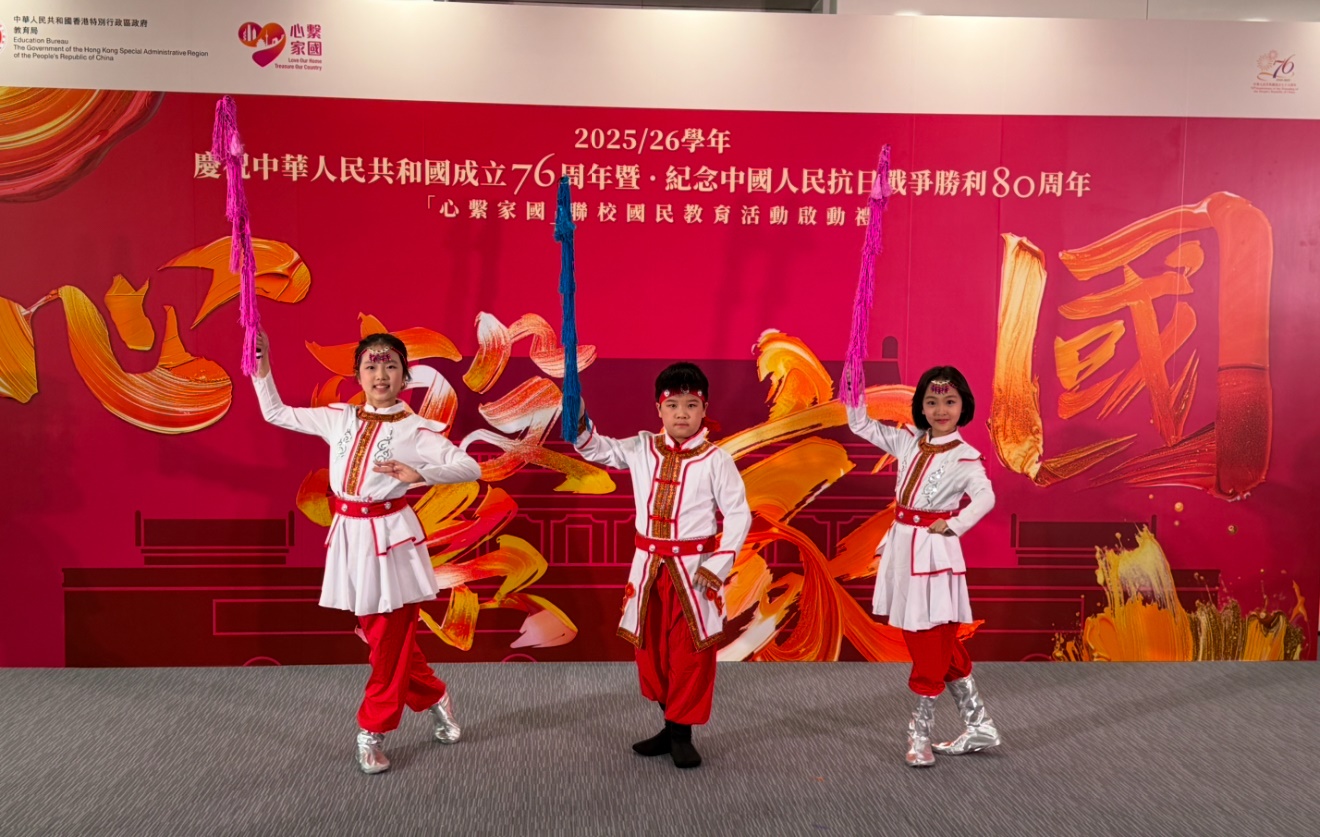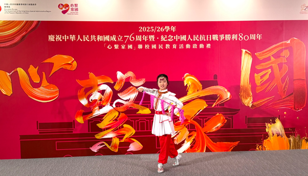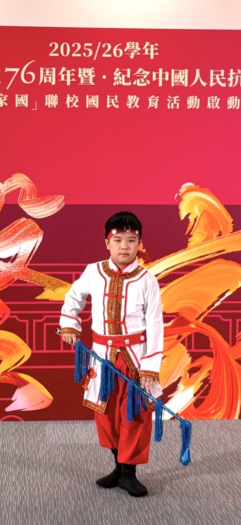 天官小的同學很高興能參與日前由教育局主辦的「心繫家國」聯校國民活動啟動禮,並於匯演節目中,與眾多友校同學一同參與演出,包括粵劇《香江之珠》及演唱歌曲《國家》。參與演出的同學於上學年已開始接受粵劇訓練,包括鑼鼓節奏、做手和唸白。同學於演出前更接受進階訓練,為演出作緊密綵排。相信在演出過後,同學都能學習成為堅毅的演出者,更能在粵劇中認識我國文化,從心底裏厚植家國情懷。