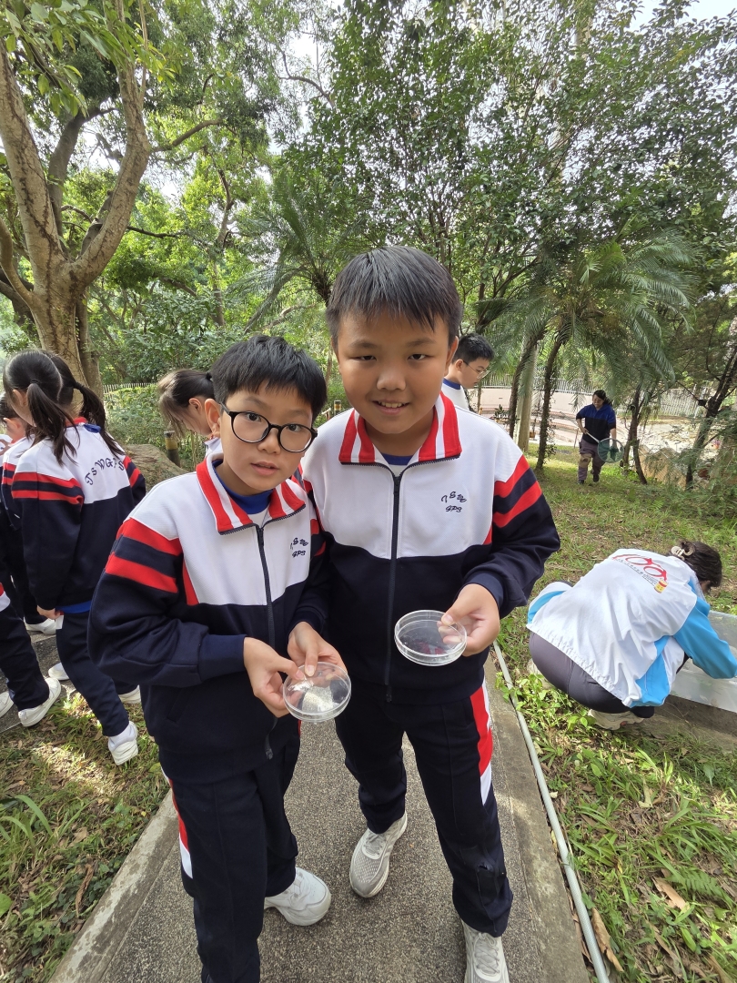 本校學生在老師的帶領下走進可觀自然教育中心,展開一場以昆蟲為主題的自然探索之旅。透過專題課程「昆蟲搜記」,學生不僅能認識昆蟲的基本分類與特性,更能掌握觀察昆蟲的技巧,培養尊重與愛護自然生物的態度。在活動中,學生參與多元而富趣味的學習活動,例如透過互動遊戲與實地考察,在野外搜集昆蟲及近距離接觸昆蟲世界,深化學生對於生物多樣性的理解,並在昆蟲分享會中以顯微鏡仔細觀察各昆蟲的特徵,合力找出昆蟲們的身份。學生在過程中能夠培養觀察力、探究精神與環境保護意識。