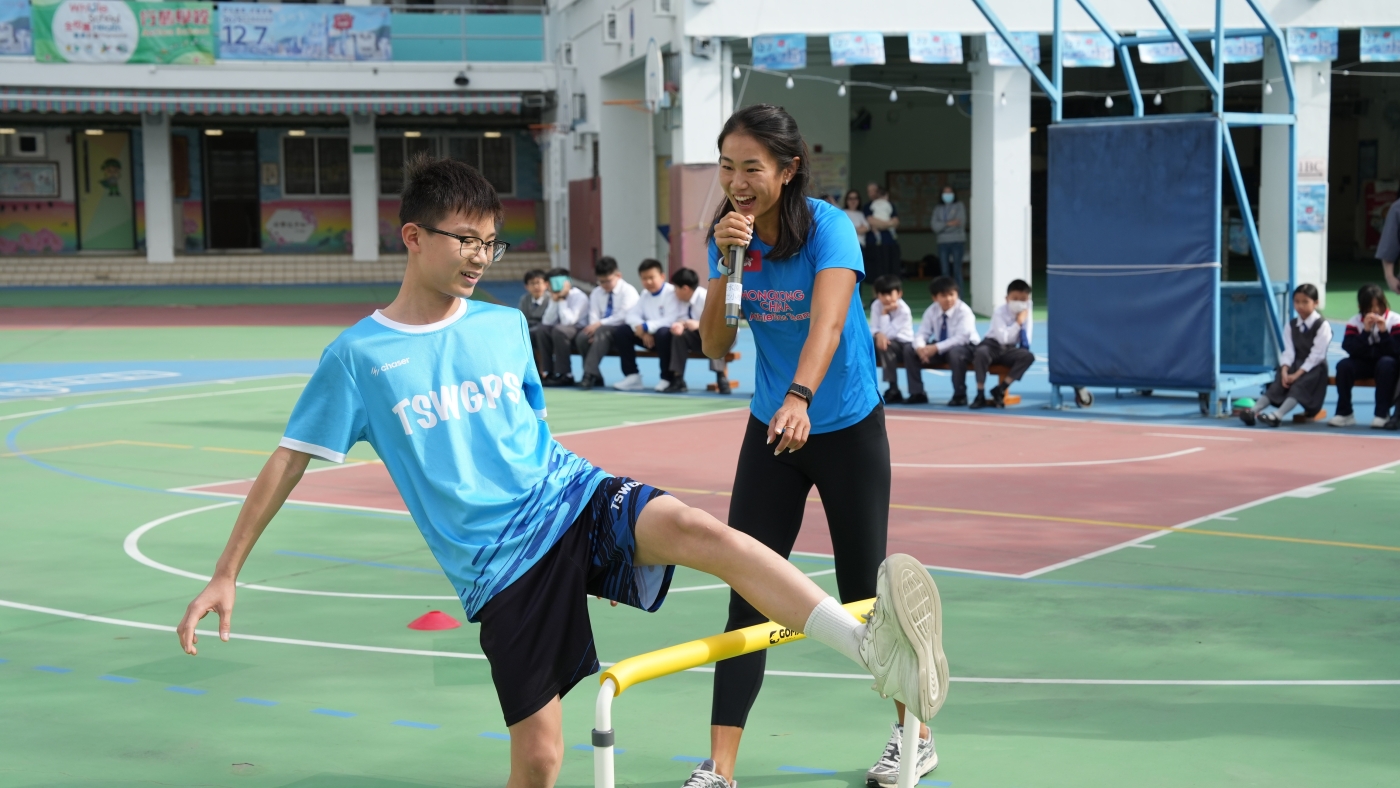 2025年12月1日本校邀請了中國香港田徑運動員呂麗瑤小姐到校分享運動員奮鬥歷程和鼓勵同學學習堅持不懈的精神。呂麗瑤小姐更與田徑隊同學進行田徑互動切磋,希望為學生建立正面的價值觀和積極的態度。活動以混合模式進行,高小學生現場參與,同步安排直播給初小學生。