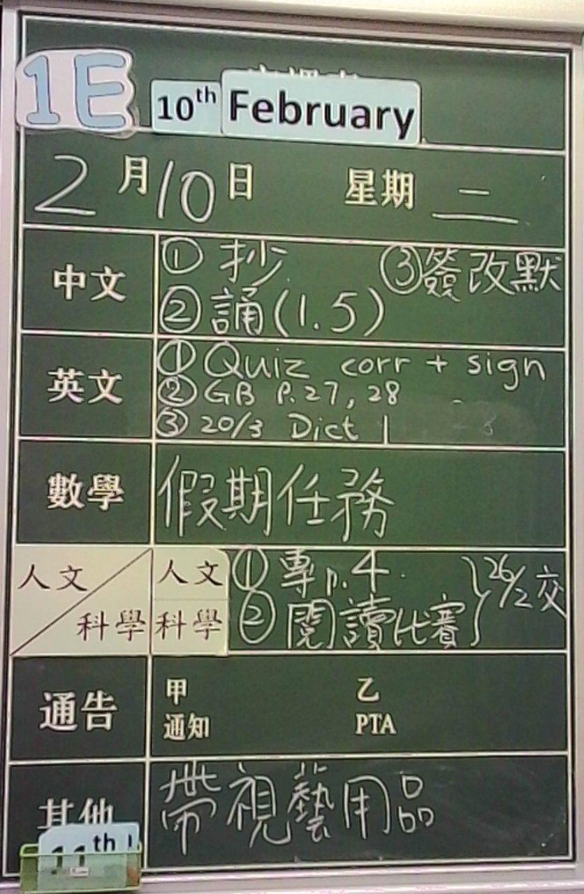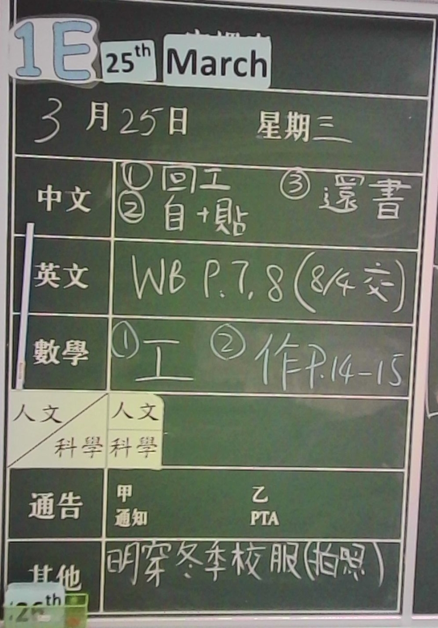 1E家課日誌