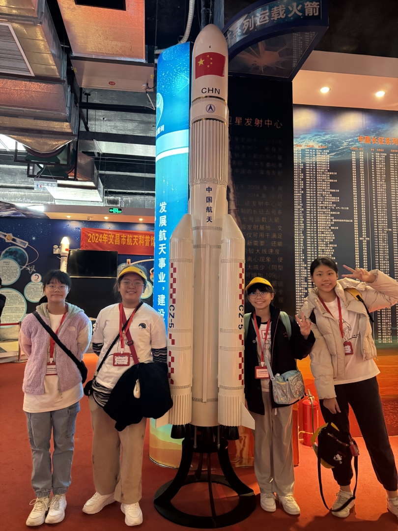 在研習營期間,學生除了參觀航天科普館、在科普基地學習火箭的製造及發射原理外,還親手製作以火藥發射的火箭並進行發射測試。此外,學生更有機會聆聽國家第一代航天員陳全大教的分享,了解航天員的選拔和訓練,獲益良多!當然,更難得的就是親身前往海南火箭發射場,近距離親睹長征五號B火箭升空的震撼和壯觀,見證祖國航天科技的偉大進程,對每一個同學和老師來說,真是一次畢生難忘的經歷!