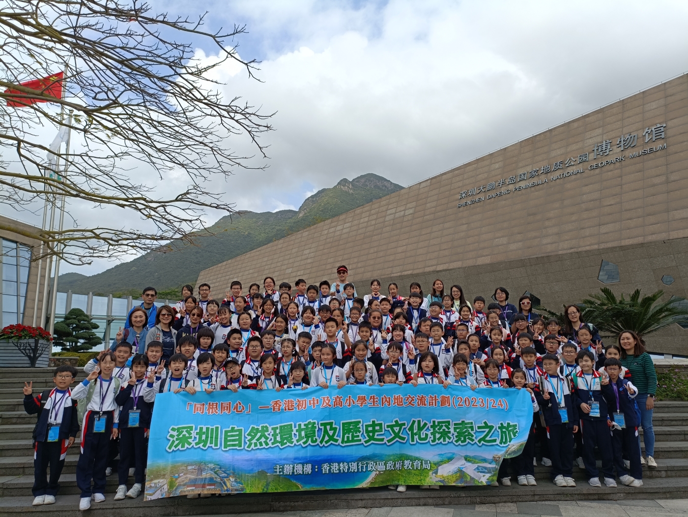 為了加強學生對深圳自然環境及歷史文化的瞭解,本校特別安排五年級同學參加由教育局舉辦的「同根同心–深圳自然環境及歷史文化探索之旅」。行程包括參觀深圳大鵬古城及深圳大鵬半島國家地質公園博物館。是次旅程令同學們眼界大開,既能初探深圳大鵬古城的歷史,亦能認識深圳的古火山地貌、各色各樣岩石和礦物晶石,了解文物保育、環境保育和國土安全的重要性,以及明白保家衛國的信念。