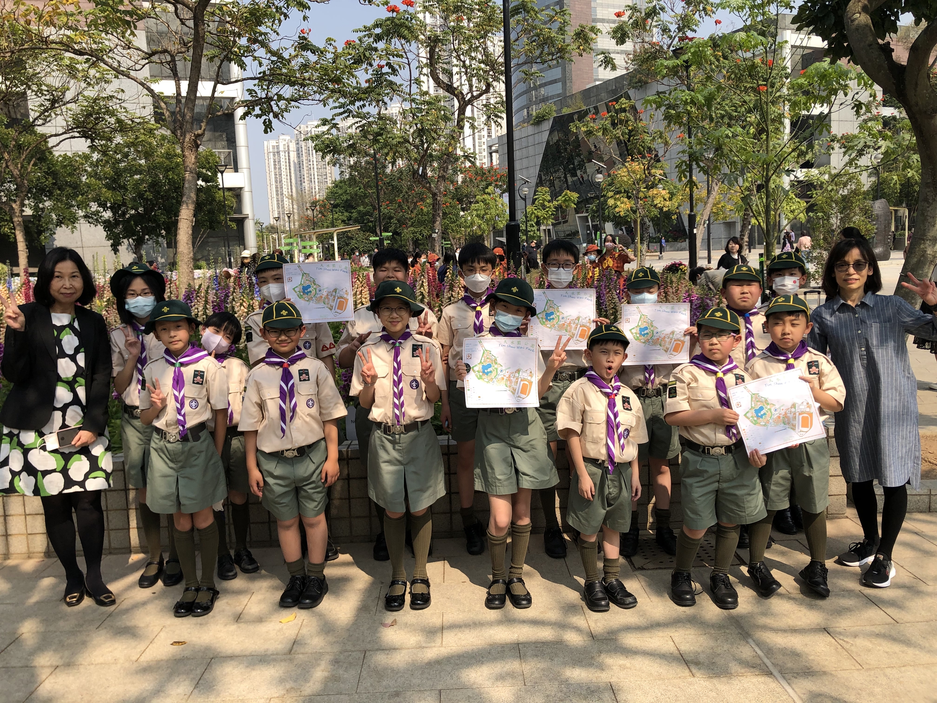 小女童軍聯同幼童軍於3月3日下午同遊天水圍公園。在幼童軍團長和副團長帶領下,以小隊形式進行定向體驗,學習使用地圖和指南針。各隊員四出觀察,積極參與,盡展探究精神,開心完成任務。小女童軍們漫步於天水圍公園中,細心觀察不同種類的花草植物,記錄不同植物的名稱及特點。隊員們興奮雀屏躍,因可以不同角度欣賞自然之美外,校長更親自探訪,一同拍照留念。