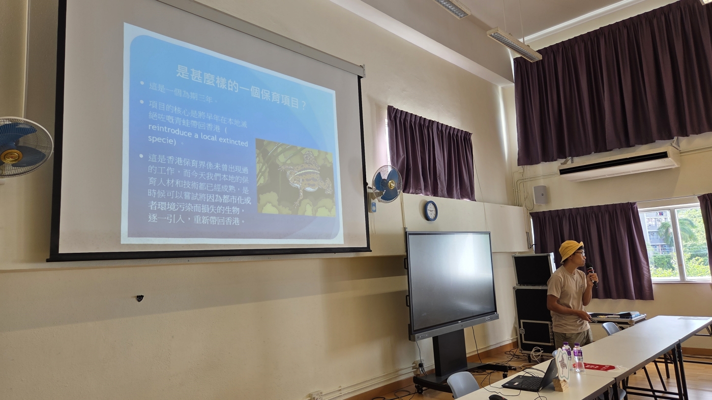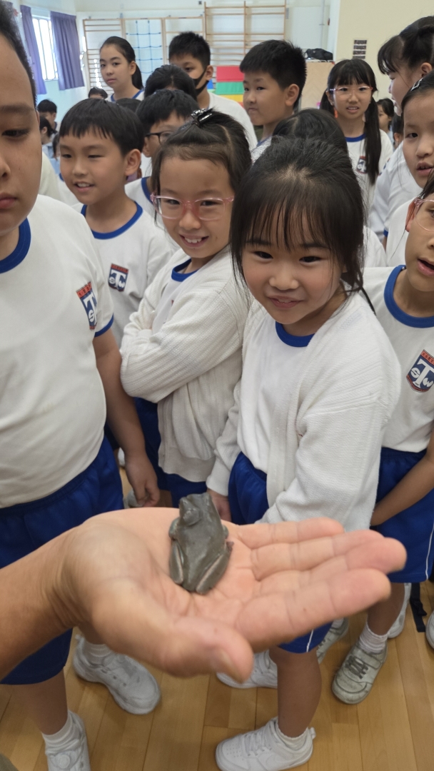 本校誠邀本地生態保育專家「馬屎老師」到校分享,他多年來以推廣香港河溪生態與物種保育為使命。講座內容涵蓋本地兩棲類物種及其生態習性,提供近距離觀察兩棲類動物的機會,並介紹本地瀕危物種如盧氏小樹蛙及中國浮蛙等的保育工作,同學們對講座內容深感與趣,且在問答環節積極提問。是次講座能有效提升學生對兩棲類動物的認識,加深環境保育的意識,學會尊重生命以及愛護自然。