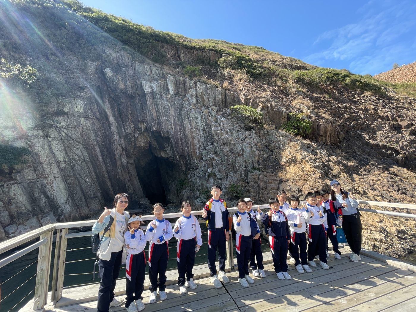 環保大使於2025年11月29日前往西貢糧船灣的地質公園進行實地考察。學生走進萬宜水庫東壩,親眼目睹1.4億年前超級火山爆發所形成的地質奇觀,不但欣賞到火山岩組成的六角形岩柱和S形彎曲岩柱,還看到獨特地貌的破邊洲,讓人嘖嘖稱奇,學生獲益良多!