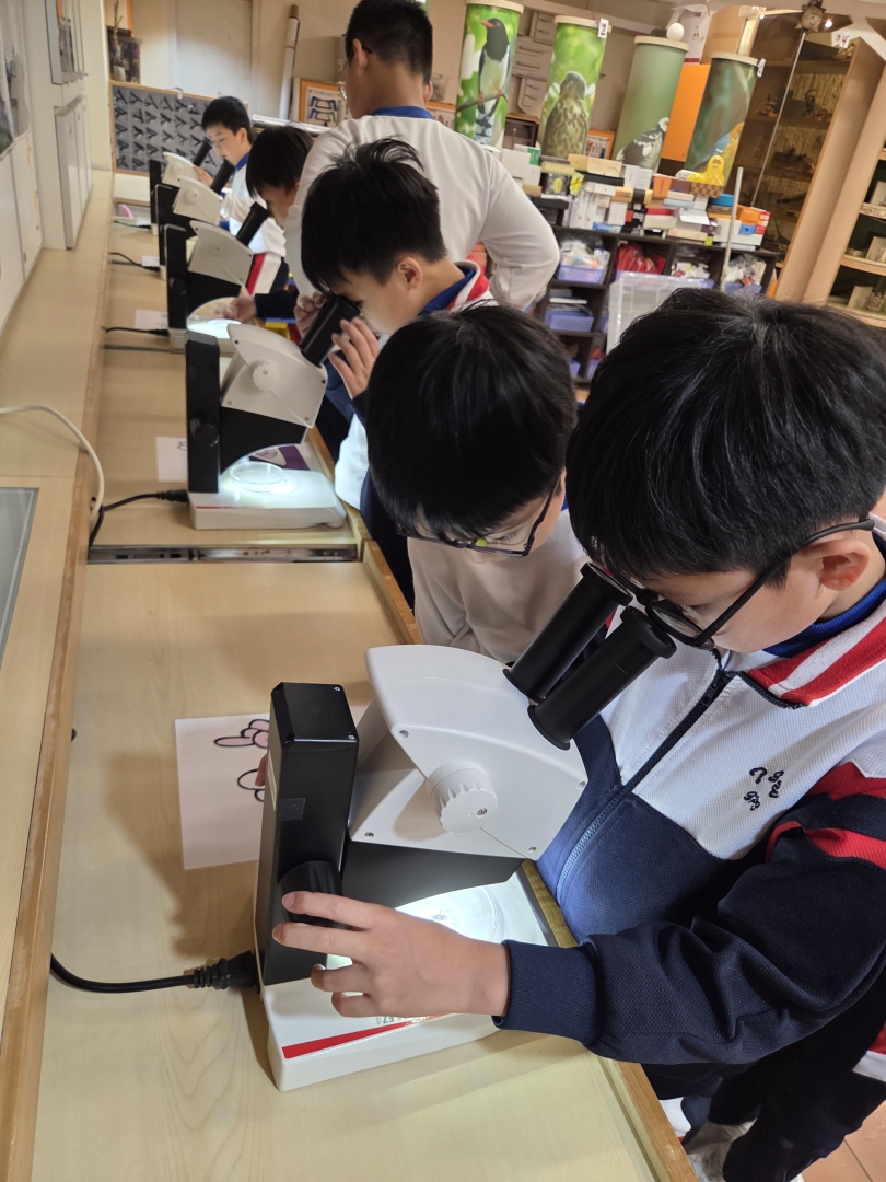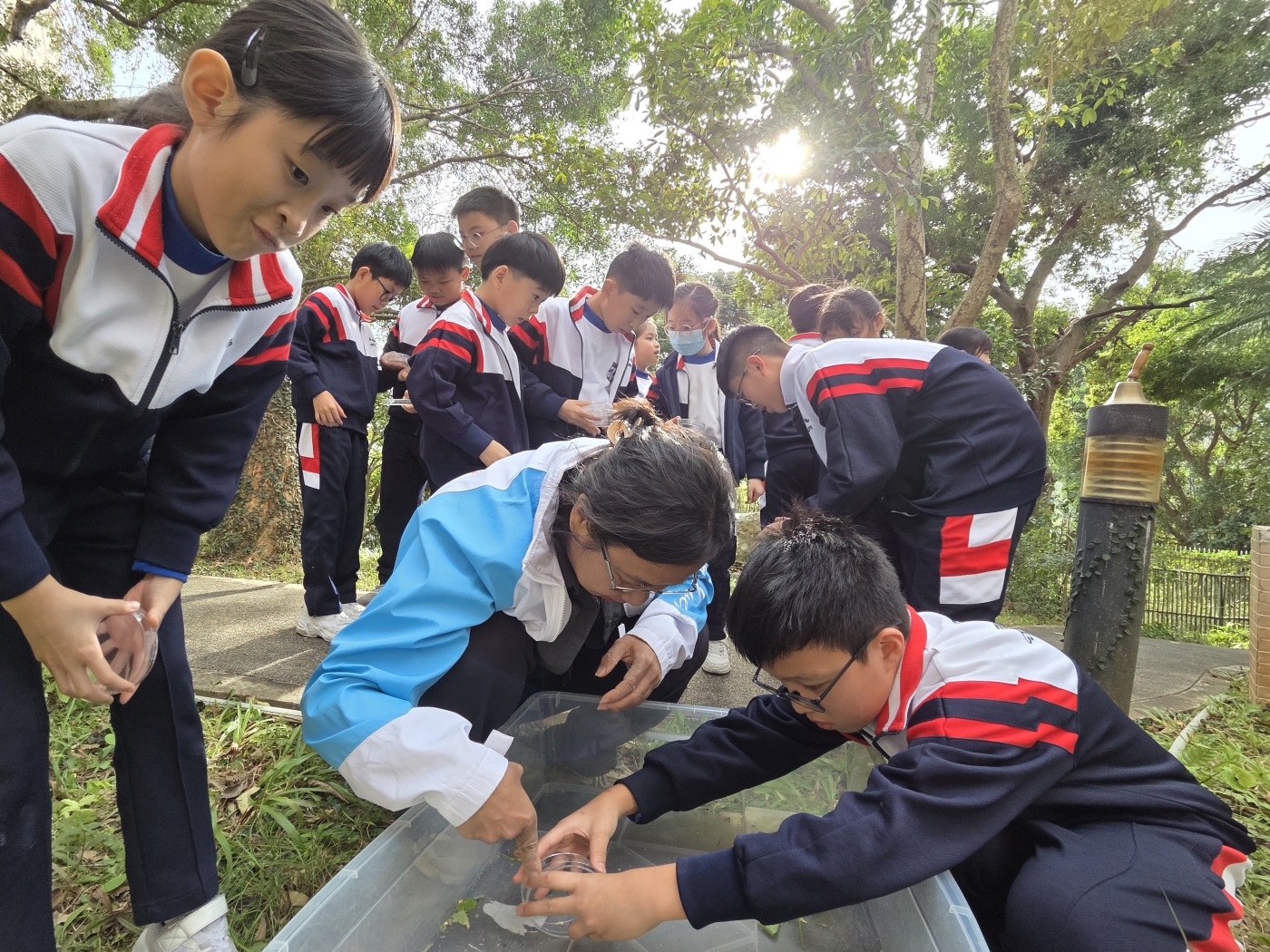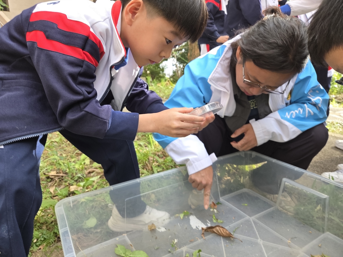本校學生在老師的帶領下走進可觀自然教育中心,展開一場以昆蟲為主題的自然探索之旅。透過專題課程「昆蟲搜記」,學生不僅能認識昆蟲的基本分類與特性,更能掌握觀察昆蟲的技巧,培養尊重與愛護自然生物的態度。在活動中,學生參與多元而富趣味的學習活動,例如透過互動遊戲與實地考察,在野外搜集昆蟲及近距離接觸昆蟲世界,深化學生對於生物多樣性的理解,並在昆蟲分享會中以顯微鏡仔細觀察各昆蟲的特徵,合力找出昆蟲們的身份。學生在過程中能夠培養觀察力、探究精神與環境保護意識。