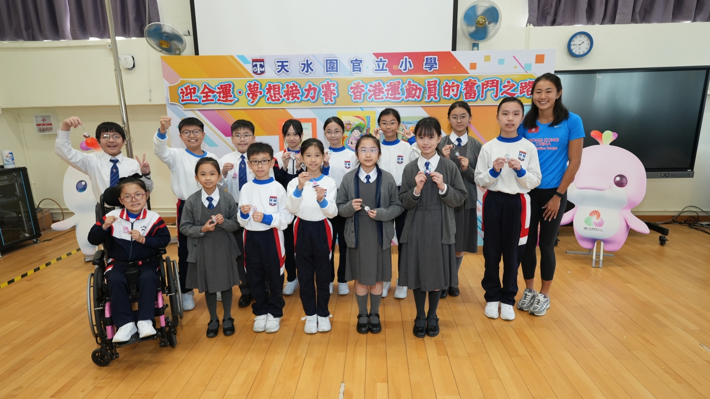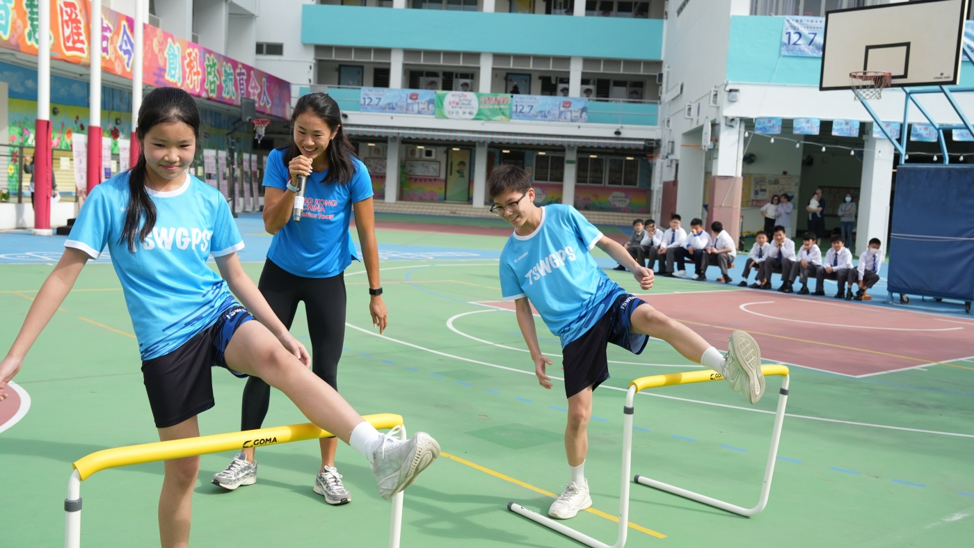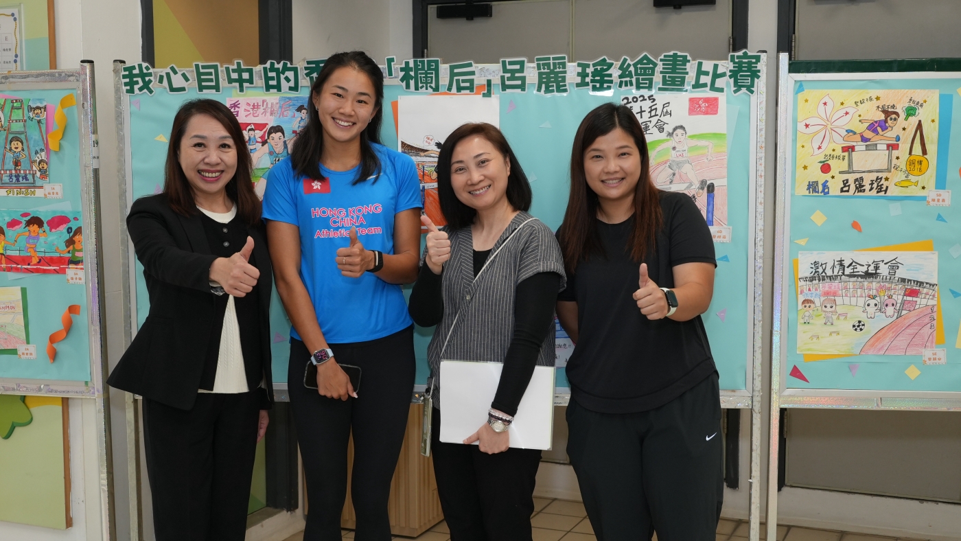 2025年12月1日本校邀請了中國香港田徑運動員呂麗瑤小姐到校分享運動員奮鬥歷程和鼓勵同學學習堅持不懈的精神。呂麗瑤小姐更與田徑隊同學進行田徑互動切磋,希望為學生建立正面的價值觀和積極的態度。活動以混合模式進行,高小學生現場參與,同步安排直播給初小學生。
