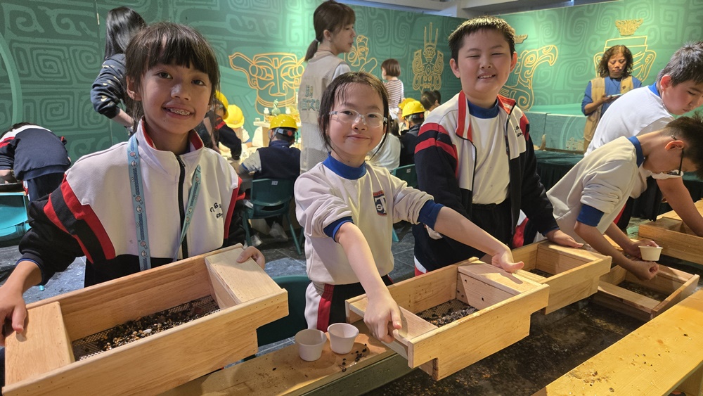 四年級學生於1月16日戶外學習日到訪饒宗頤文化館,參與「玩轉古文明」體驗活動。透過一系列結合中國古文明與科技的體驗式學習活動,包括三星堆遺址參觀、淘金體驗、考古發掘、中草藥認識、香包製作、陶器製作、森林體驗等讓學生親身實踐,激發多元學習動機,讓學生對中國古文明文化遺產及歷史發展有更深的認識,並培養他們欣賞古代藝術,以及體驗考古發掘的樂趣,藉以提升國民身份認同。此外,透過森林歷奇體驗亦讓學生了解動植物的多樣性、森林生態系統的功能,以及保護環境的重要性,確實獲益良多,樂而忘返。